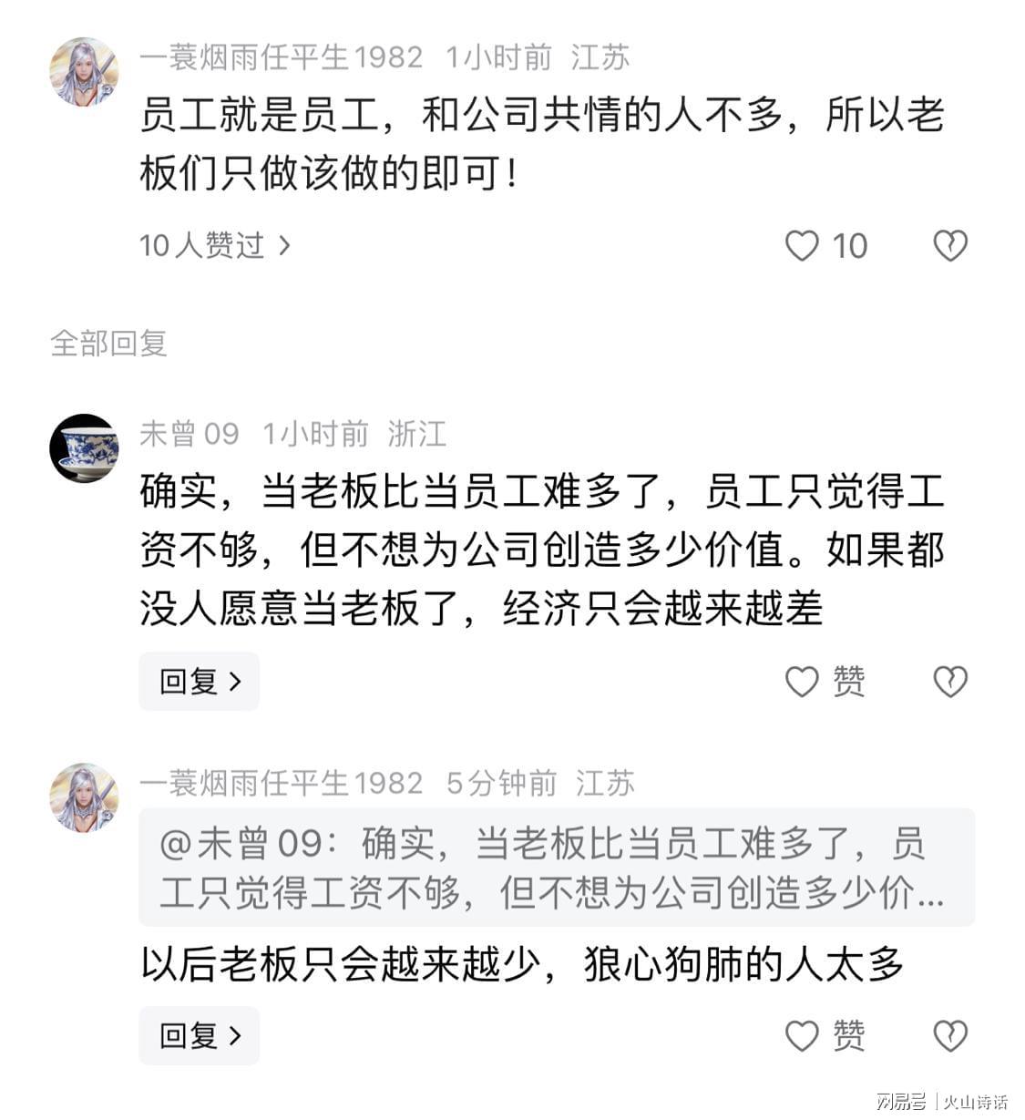 针对此事,有网友唏嘘,员工就是员工,和公司共情的人不多,所以老板们只做该做的即可!